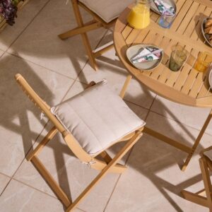 Gather in style with the Ashdown Folding 4 Seat Dining Set with Cushions — a beautifully crafted five-piece set that brings elegance and comfort to any outdoor dining area. Combining natural eucalyptus hardwood with soft, UV-treated seat pads, this set is perfect for relaxed outdoor meals or cozy garden gatherings.