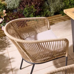 - Chairs with contemporary rope weave design over a powder-coated steel frame