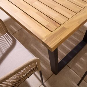 - Durable acacia hardwood tabletop with powder-coated steel legs