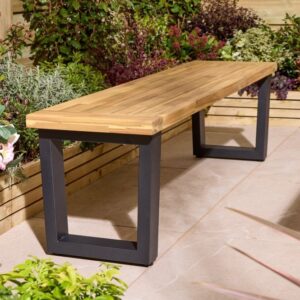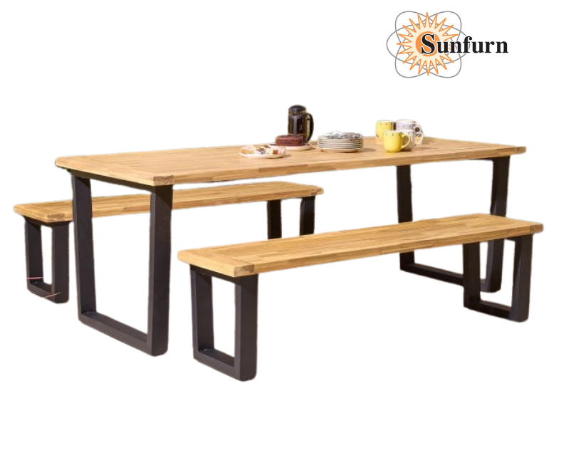 - Durable Acacia hardwood bench seats with powder coated steel legs