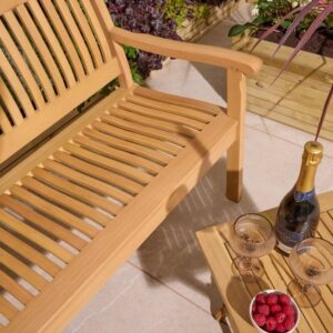 Expertly crafted from durable eucalyptus hardwood, it offers excellent strength and weather resistance, making it ideal for gardens, patios, or terraces. The factory-applied oil-based wood stain highlights the wood’s natural grain while providing an added layer of protection against the elements.